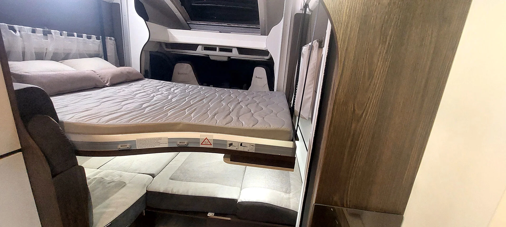 Si buscas un alquiler de autocaravana compacta en Albacete, la Autocaravana C-Perfilada, apodada cariñosamente "La Rutera", es la opción perfecta. En solo 6 metros de largo tendrás todo lo que necesitas: doble cama de 135cm, una amplia cocina y un baño completo que te sorprenderá por su funcionalidad. Además, su salón convertible es tan espacioso que ya lo quisieran autocaravanas más grandes.